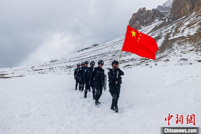 圖為貢當(dāng)邊境派出所民警正在進(jìn)行巡邏踏查。日喀則邊境管理支隊(duì)供圖