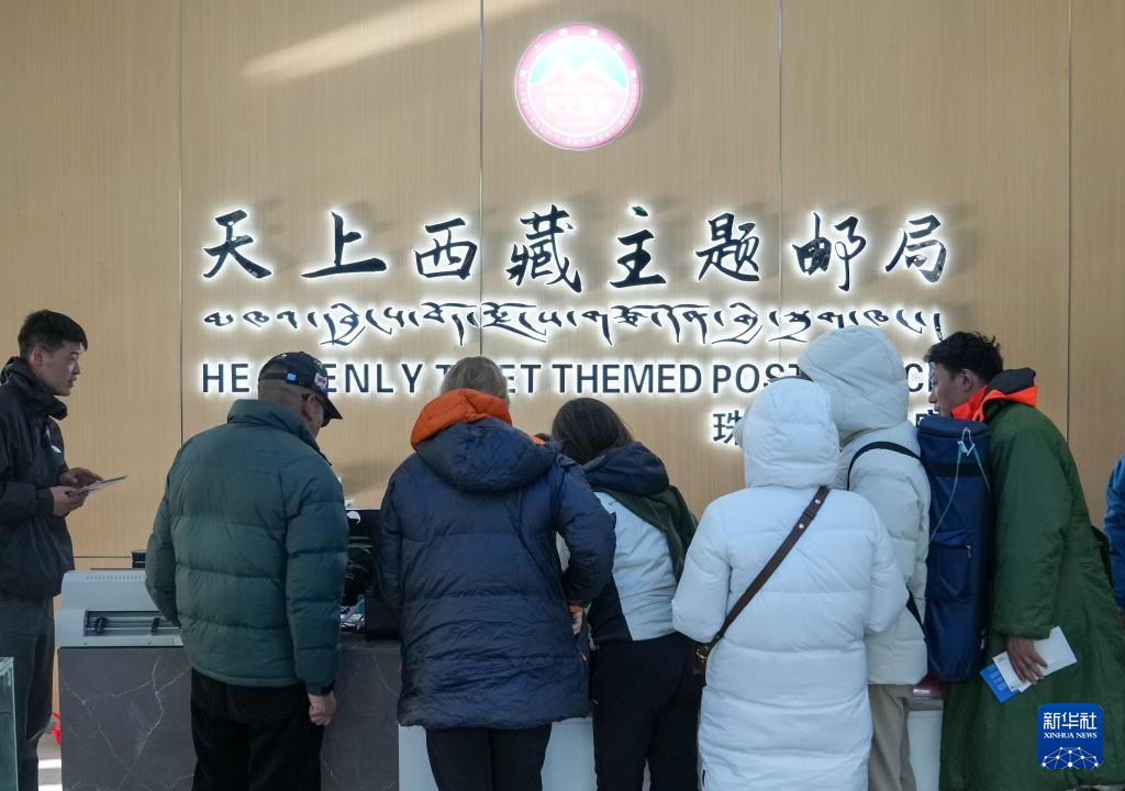 游客在位于珠峰游客大本營(yíng)的郵局排隊(duì)購(gòu)買明信片(5月24日攝)。