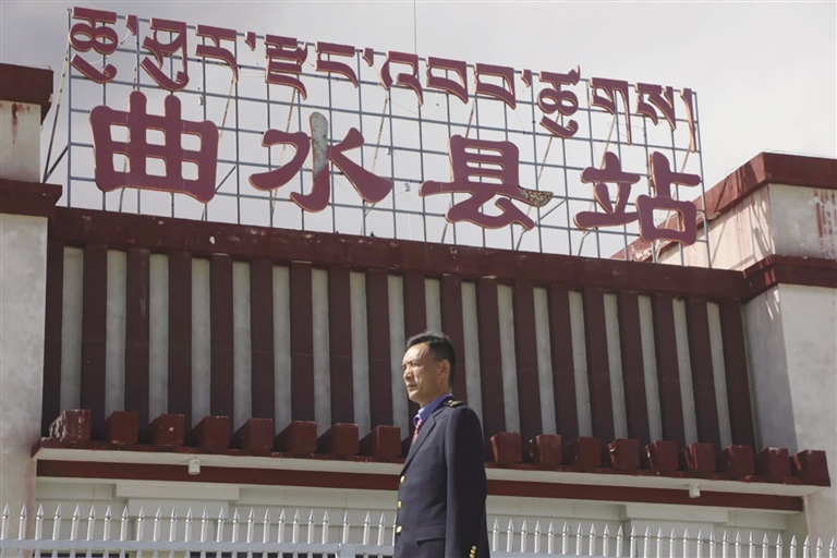 每天,清晨的第一縷陽光還未穿透遠方的山巒時,車站值班員賀文貴已經(jīng)站在曲水站的站臺上,開始了他日復一日的工作,查看股道是否有異物,是否有動物進入站場。曲水站與其他站不一樣,根據(jù)工作安排,平時這里只有一個人當班應急值守,沒有旅客上下站,時而駛過的火車,是這里唯一的來客。目之所及,只有遠處的雪山、農(nóng)田和滾滾向前的雅魯藏布江水。