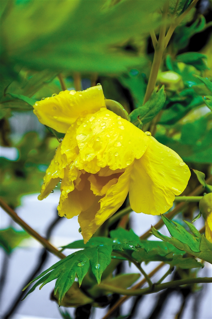 盛開的黃牡丹。