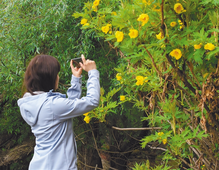 游客在拍攝黃牡丹。