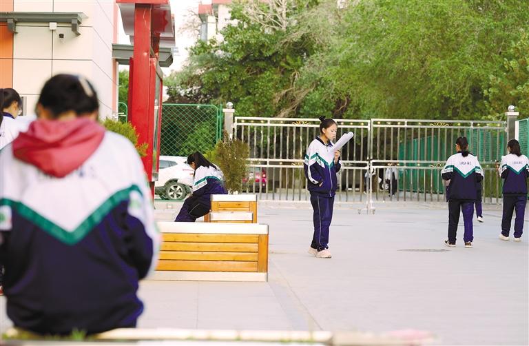 在拉薩中學(xué)的校園內(nèi),高三學(xué)生們抓緊時(shí)間復(fù)習(xí)備考。記者 潘多 攝