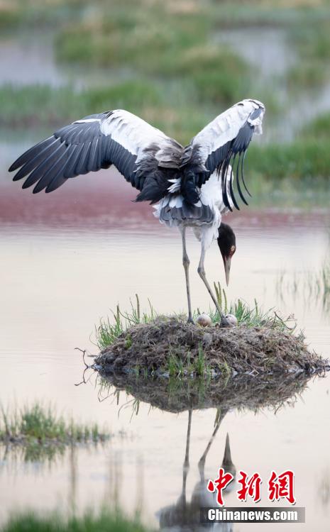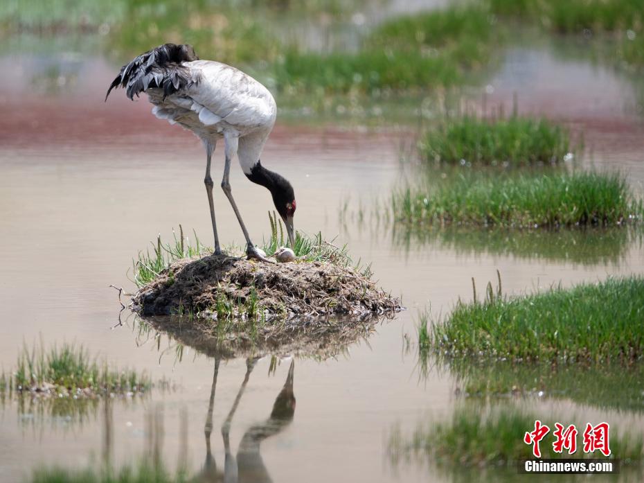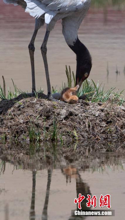 6月16日,在海拔4700米的西藏那曲市申扎縣,經過34天的漫長孵化期,一對黑頸鶴夫婦終于等來了自己的小黑頸鶴成功破殼出生。值得一提的是,黑頸鶴寶寶的誕生日也是2024年的父親節(jié),黑頸鶴父親在節(jié)日當天喜獲最珍貴的禮物。據(jù)悉,黑頸鶴每窩通常產卵1-2枚,孵化期通常要33到35天。中新社記者 貢嘎來松 攝