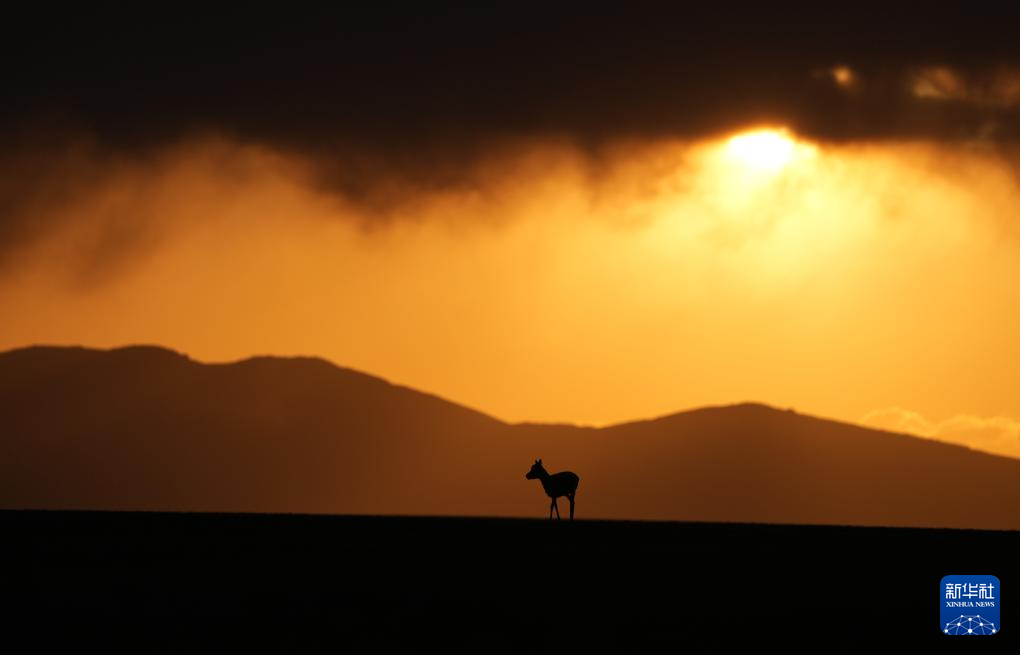 晚霞中待產(chǎn)的藏羚羊(6月16日攝)。新華社記者 費茂華 攝