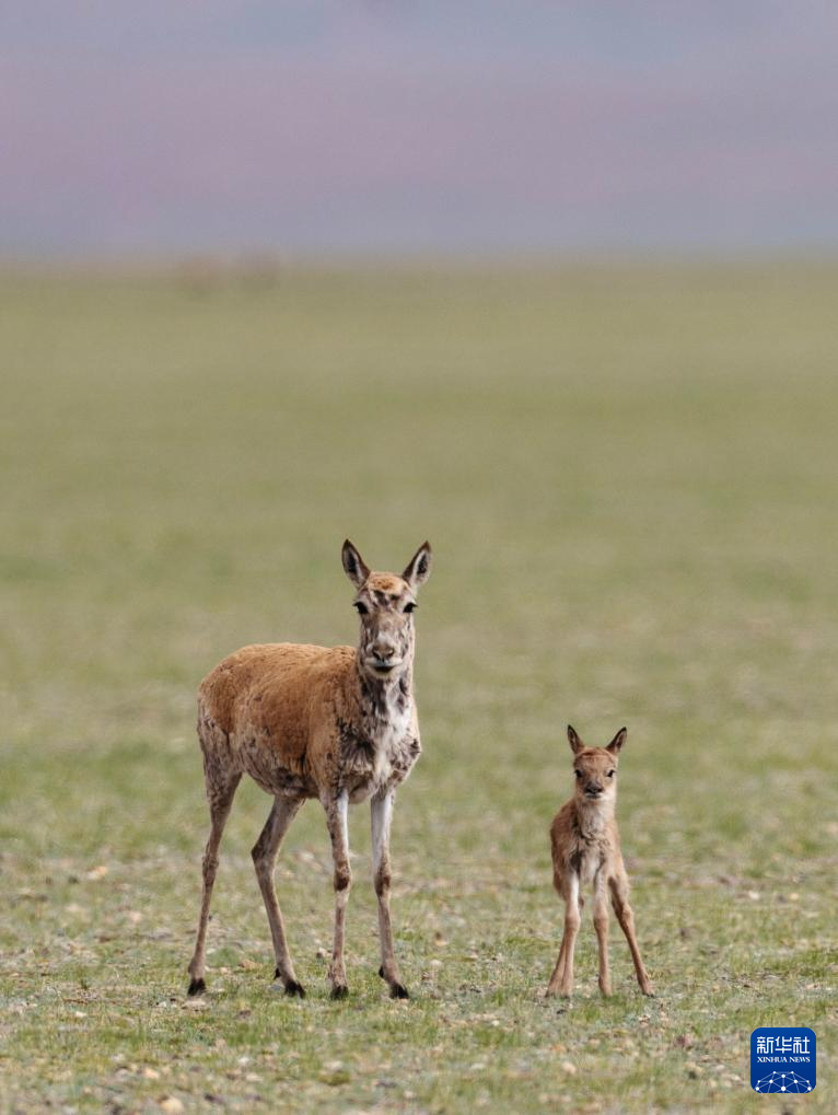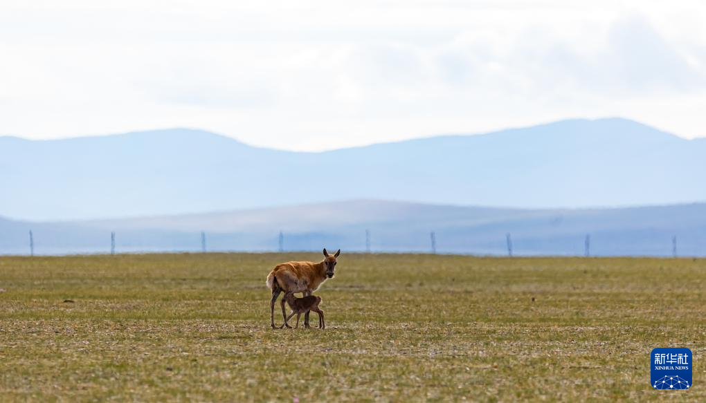 魯確塘草原上的藏羚羊母子(6月16日攝)。新華社記者 旦增尼瑪曲珠 攝