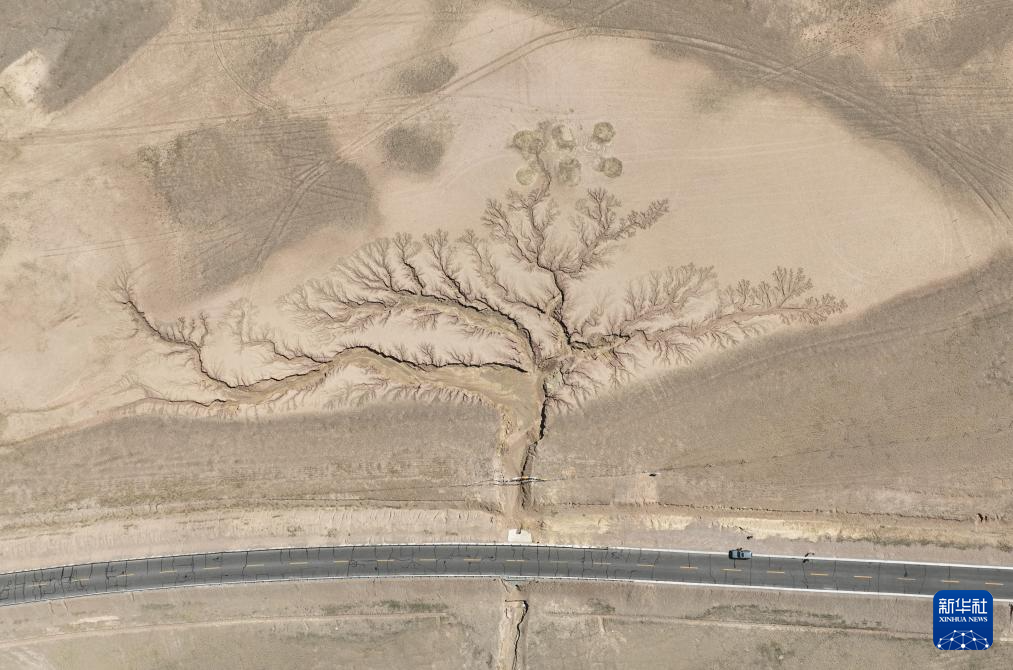 這是在甜水河畔荒灘雪地中向產(chǎn)羔地遷徙的藏羚羊(6月15日攝 無(wú)人機(jī)照片)。新華社記者 晉美多吉 攝
