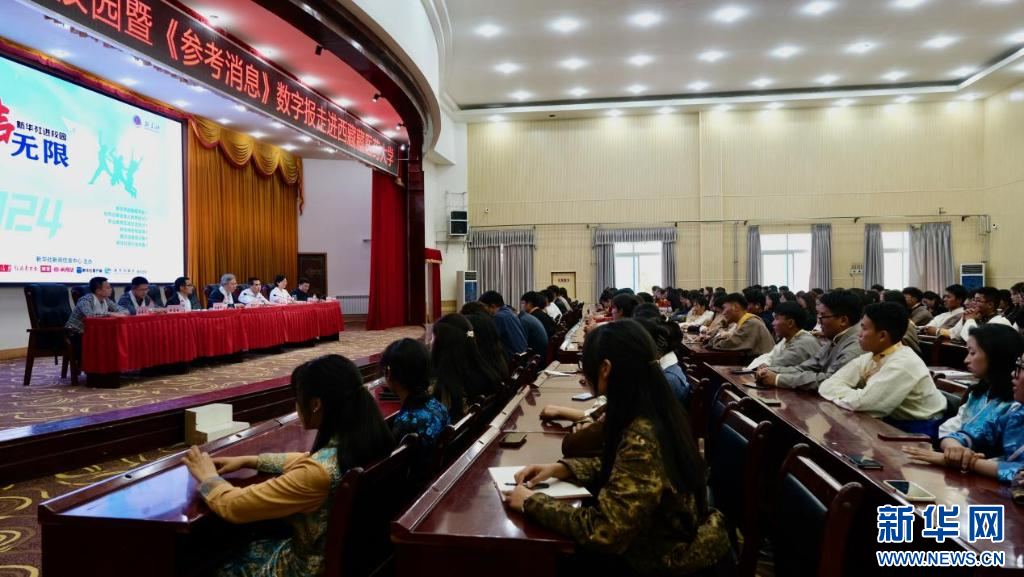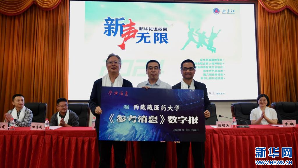 20日,“新聲無(wú)限——2024年新華社進(jìn)校園活動(dòng)”在西藏藏醫(yī)藥大學(xué)舉行。新華社參考消息報(bào)社向西藏藏醫(yī)藥大學(xué)贈(zèng)閱了《參考消息》數(shù)字報(bào)。參考消息報(bào)社總編輯陶德言,新華社西藏分社分黨組成員、副社長(zhǎng)林建楊和西藏藏醫(yī)藥大學(xué)黨委書記、副校長(zhǎng)鞠明兵致辭,西藏藏醫(yī)藥大學(xué)黨委委員、副校長(zhǎng)于廣琮主持活動(dòng)儀式,參考消息報(bào)社專題室主任田寶劍 與到場(chǎng)師生進(jìn)行面對(duì)面分享交流。