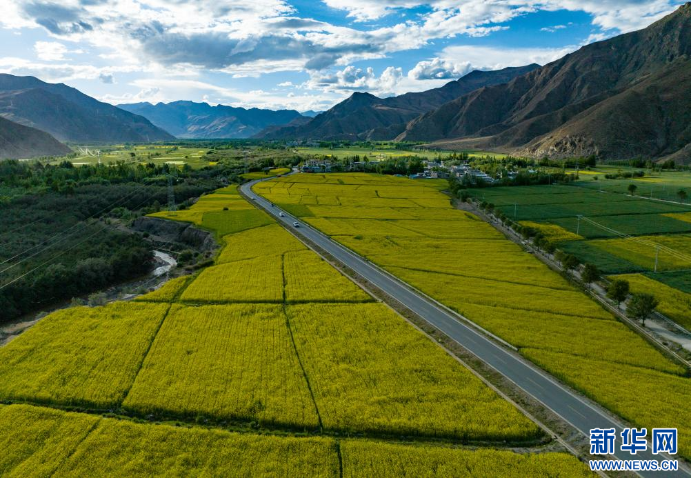 盛夏時(shí)節(jié),在西藏山南市乃東區(qū)雅礱河谷,金燦燦的油菜花與綠蔥蔥的青稞地交相輝映,河谷變成大自然的調(diào)色盤,宛如一幅絢麗的畫卷。
