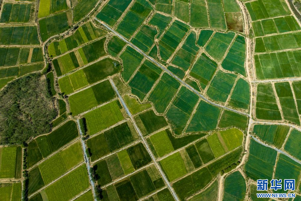 6月21日在西藏山南市乃東區(qū)境內(nèi)拍攝的田園風(fēng)光(無(wú)人機(jī)照片)。新華網(wǎng) 旦增努布 攝