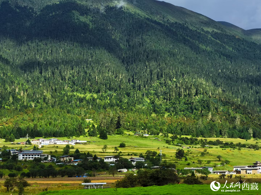 群山懷抱的扎西崗村。人民日報記者 瓊達(dá)卓嘎攝