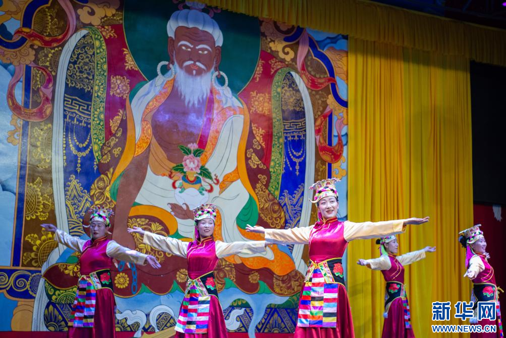 6月24日,群眾在國家級非物質(zhì)文化遺產(chǎn)雅礱扎西雪巴藏戲傳習基地表演傳統(tǒng)舞蹈節(jié)目。新華網(wǎng) 旦增努布 攝