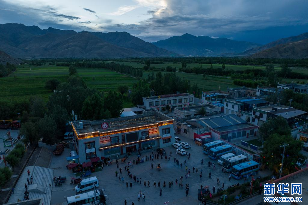 6月24日,游客在扎西曲登社區(qū)廣場體驗篝火廣場舞。新華網(wǎng) 旦增努布 攝