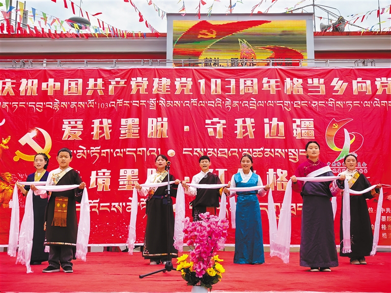 圖為“愛(ài)我墨脫 守我邊疆”慶祝中國(guó)共產(chǎn)黨建黨103周年文藝匯演現(xiàn)場(chǎng)。記者 王敏 通訊員 郎玲 攝