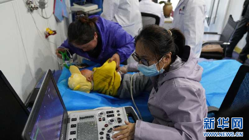 “心佑工程”團(tuán)隊(duì)成員正在對疑似先天性心臟病患兒進(jìn)行心超檢查(新華社發(fā))