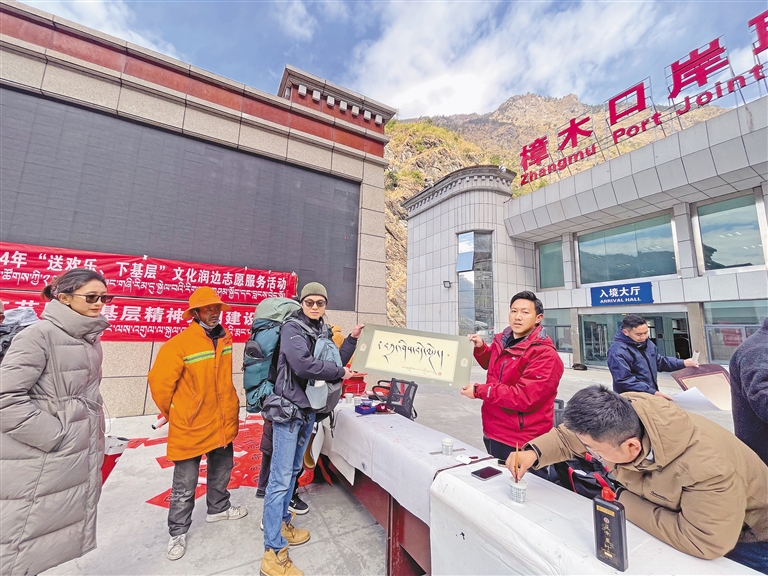 圖為日喀則市文聯(lián)在樟木口岸舉行送新春祝?;顒?。