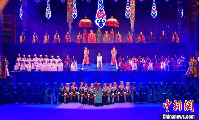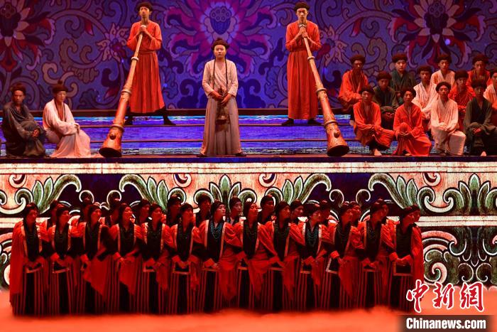 7月19日晚,《緣起象雄·古格遺風(fēng)》情景歌舞詩劇在西藏拉薩上演。該劇通過歌、舞、詩、畫等多種藝術(shù)形式,帶領(lǐng)觀眾身臨其境地感受古象雄文化的獨特魅力和古格王朝的輝煌與傳奇。圖為《緣起象雄·古格遺風(fēng)》演出現(xiàn)場。中新社記者 李林 攝