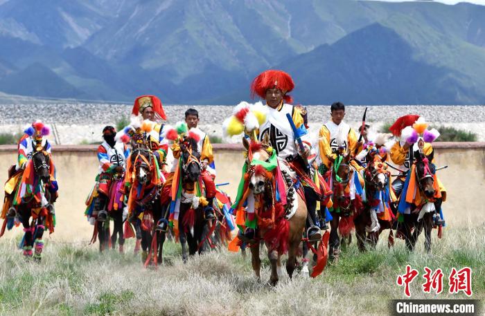 7月27日,西藏拉薩市桑達(dá)村迎來“望果節(jié)”,村民們舉行賽馬活動慶祝?!巴?jié)”是西藏傳統(tǒng)的豐收節(jié),具體日期隨各地莊稼成熟的時間而變化?!巴?jié)”期間,按照習(xí)俗,各地都會舉辦賽馬比賽。圖為馬術(shù)表演現(xiàn)場。中新社記者 李林 攝