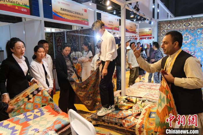 來自阿富汗喀布爾的商人阿明扎伊·穆罕默德·賈(Aminzai Mohammad Jan)主要銷售阿富汗毛毯等手工藝品,這是他第二次進(jìn)藏展銷?,F(xiàn)場,阿明扎伊·穆罕默德·賈十分忙碌,不斷為顧客挑選合適的款式和花色,顧客砍價(jià)時(shí),他便掏出手機(jī)播放毛毯的制作過程。他說,期待這次銷量更好。