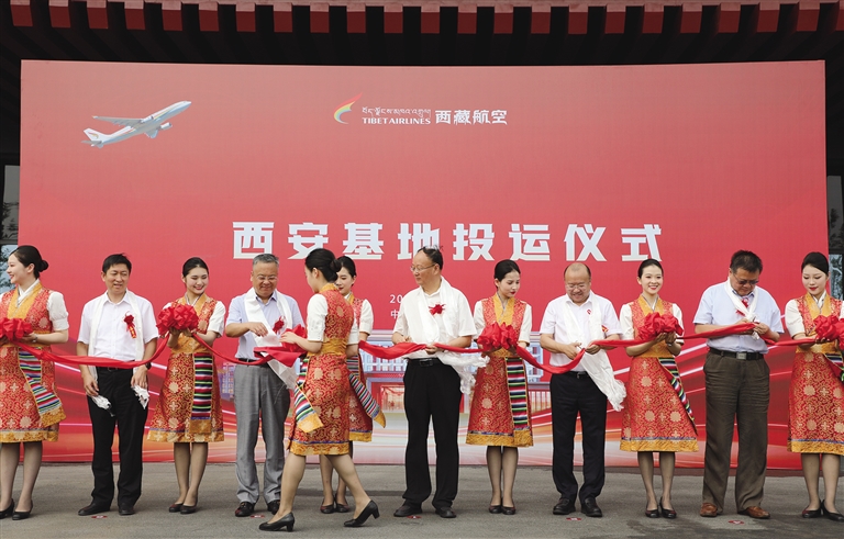 西藏航空西安運(yùn)行基地投運(yùn)儀式現(xiàn)場(chǎng)。圖由西藏航空提供