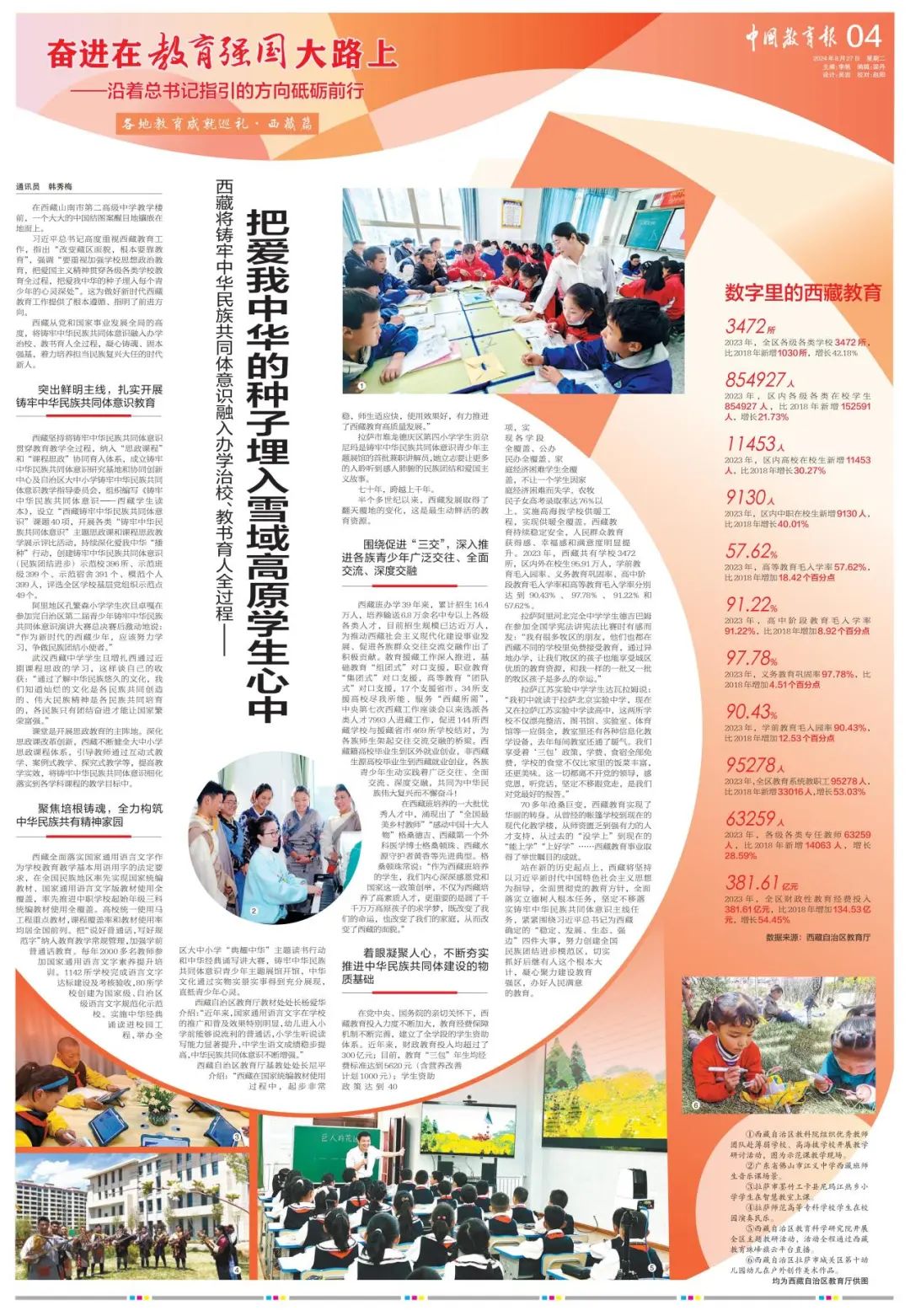 今天,“奮進(jìn)在教育強(qiáng)國大路上——沿著總書記指引的方向砥礪前行”專欄之“各地教育成就巡禮”系列,通過一個(gè)視頻、一組大圖、一篇報(bào)道介紹西藏如何將鑄牢中華民族共同體意識融入辦學(xué)治校、教書育人全過程——