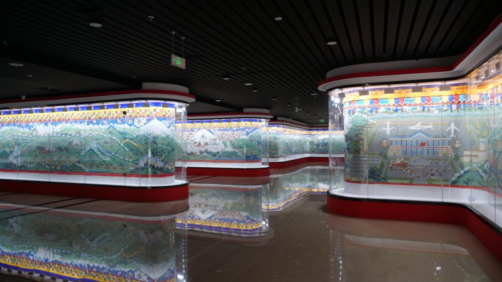 日喀則非物質(zhì)文化遺產(chǎn)展示中心里展覽的新題材唐卡(2024年5月7日攝)。新華社記者 邱星翔 攝