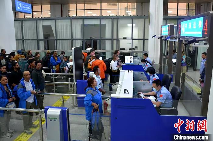 圖為吉隆口岸移民管理警察正在驗放滯留出入境旅客。賀東 攝