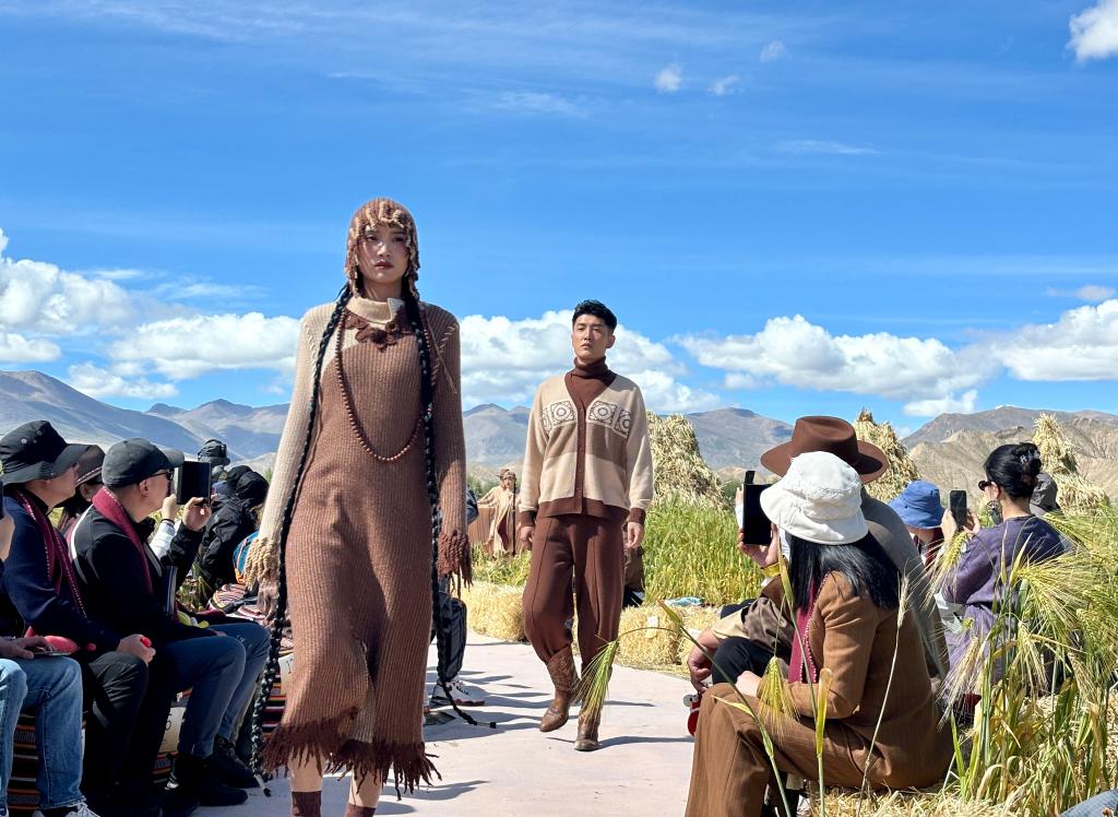 非遺氆氌變成時(shí)尚服飾亮相秀場(chǎng)。新華社記者 王辰陽(yáng) 攝