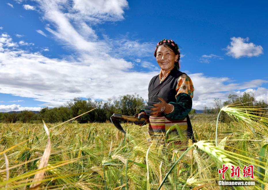 圖為9月14日,日喀則市江孜縣村民準(zhǔn)備收青稞。中新社記者 李林 攝