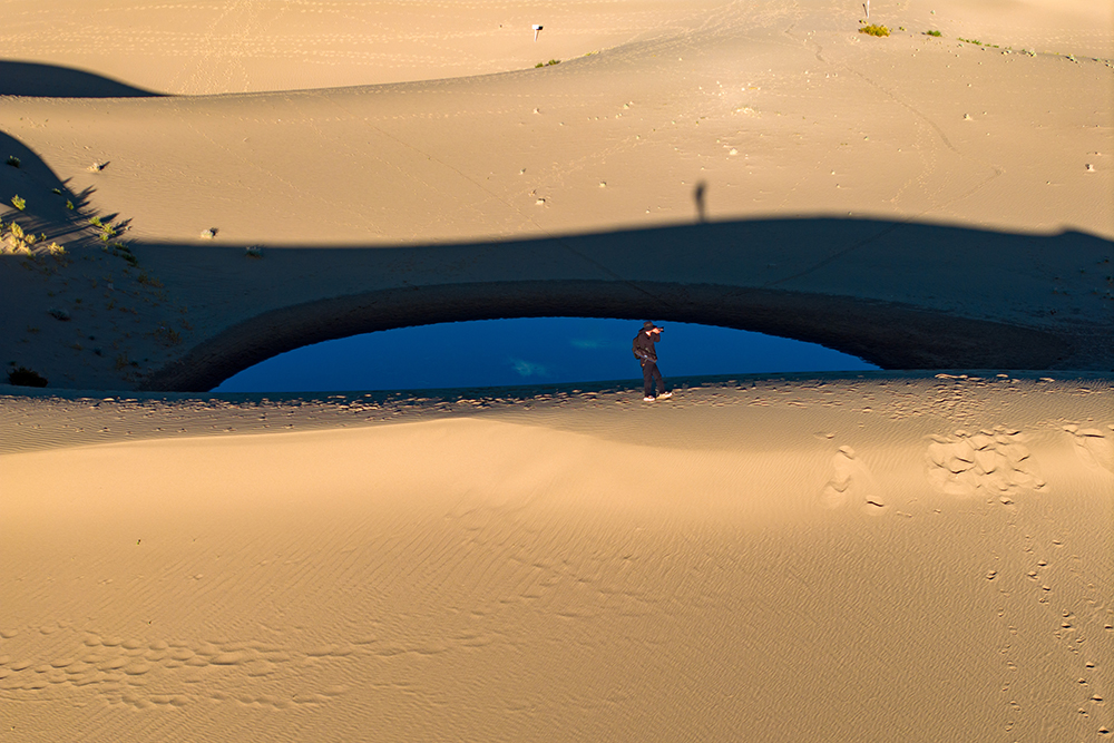 游客在西藏山南扎囊國家沙漠公園拍攝(無人機照片,9月15日攝)。新華網 旦增努布 攝
