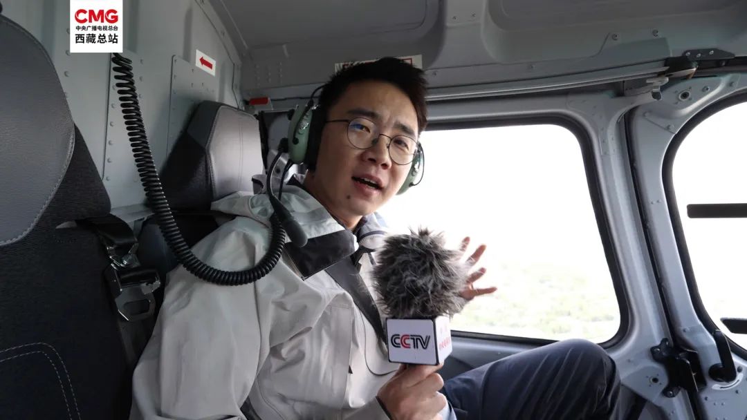 圖為:總臺(tái)記者呂小品乘直升機(jī)鳥瞰新拉薩
