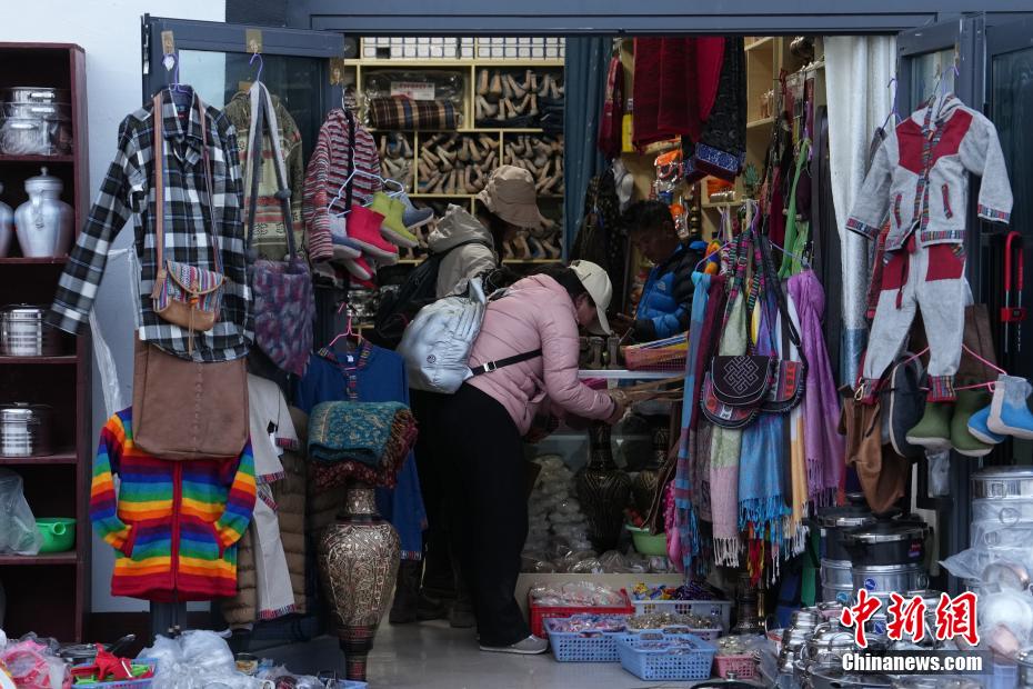 9月30日,游客在位于西藏阿里地區(qū)普蘭縣的唐噶邊貿市場選購商品。中新社記者 崔楠 攝