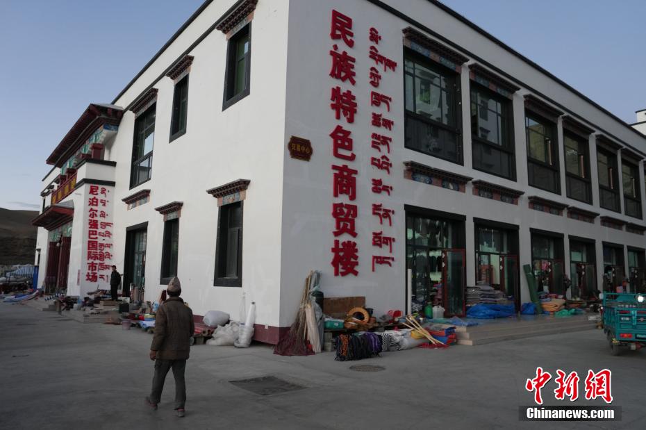 9月30日,位于西藏阿里地區(qū)普蘭縣唐噶邊貿市場旁的尼泊爾強巴國際市場民族特色商貿樓。中新社記者 崔楠 攝