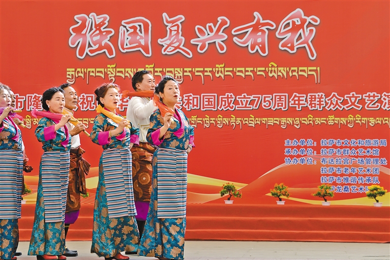 10月1日上午,“強(qiáng)國復(fù)興有我”群眾文藝演出在拉薩市宗角祿康公園舉行。記者 潘多 攝