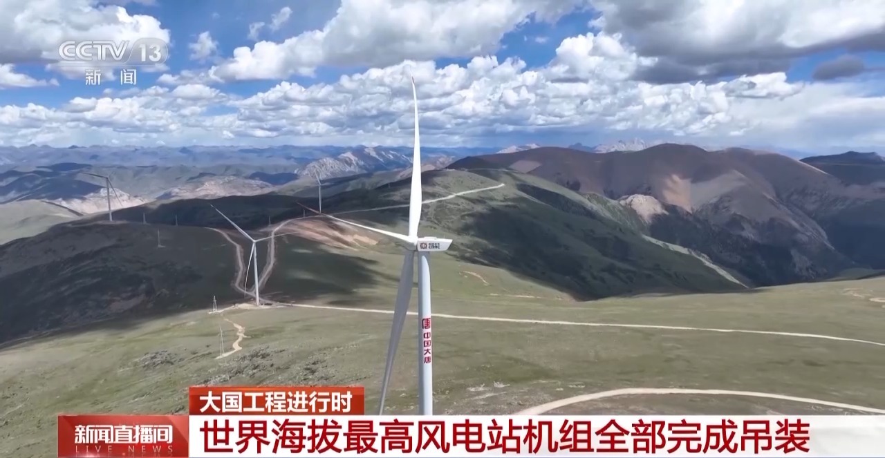 在海拔5000多米的青藏高原,世界海拔最高的風(fēng)電機(jī)組剛剛完成全部吊裝。