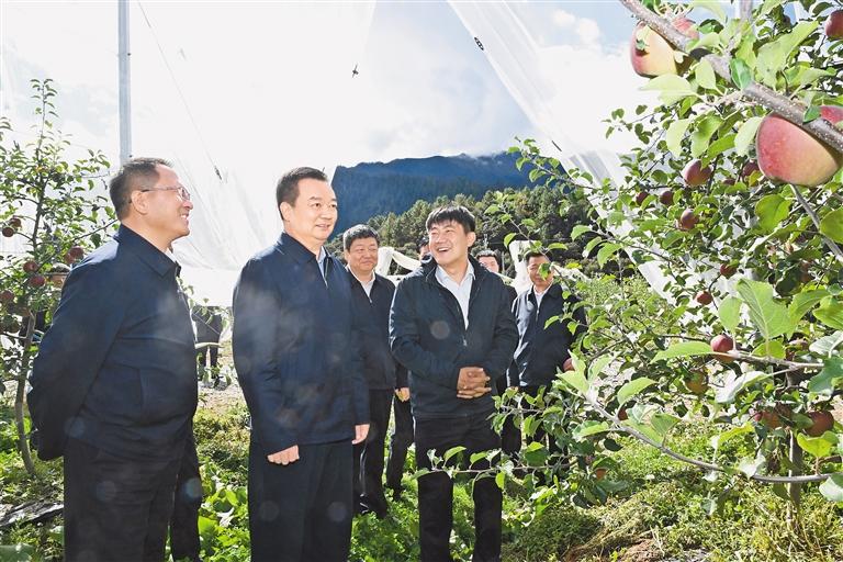 10月6日至7日,自治區(qū)黨委書記王君正在林芝市巴宜區(qū)、米林市調研。這是王君正在巴宜區(qū)百巴鎮(zhèn)增巴村煙臺大山果業(yè)開發(fā)有限公司的蘋果種植點了解產業(yè)發(fā)展等情況。記者 旦增西旦 攝
