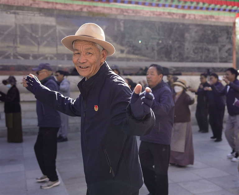今年78歲的巴桑次仁,每天都要到宗角祿康公園跳鍋莊舞,在鍛煉身體之余還能結(jié)識很多老年朋友,平常也會一起約著出去游玩?!艾F(xiàn)在的生活很幸福,衣食住行不用愁,最重要的還是身體健康,每天去公園里跳跳舞不僅心情愉悅也能鍛煉身體?!闭f起自己的晚年生活,老爺子倍感欣慰。