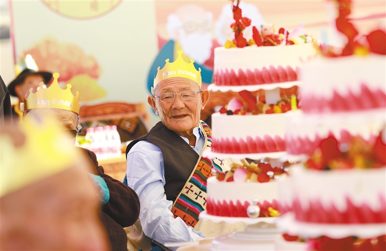 圖為拉薩市墨竹工卡縣民政局和退役軍人事務(wù)局舉行“我們的節(jié)日·重陽”主題活動(dòng),現(xiàn)場(chǎng)為老人們集體過生日。記者 唐斌 通訊員 洛克 攝