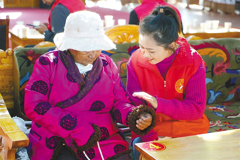 圖為那曲市索縣新時(shí)代文明實(shí)踐中心為特困人員集中供養(yǎng)服務(wù)中心的老人送去關(guān)心和關(guān)愛。記者 曲珍 通訊員 王霖 攝