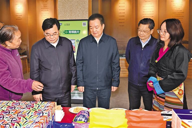 10月16日至17日,甘肅省黨政代表團(tuán)來藏考察。這是在藏期間,甘肅省黨政代表團(tuán)考察西藏奇正青稞健康科技有限公司,了解高原特色產(chǎn)業(yè)發(fā)展情況。 本報(bào)記者 旦增西旦 攝