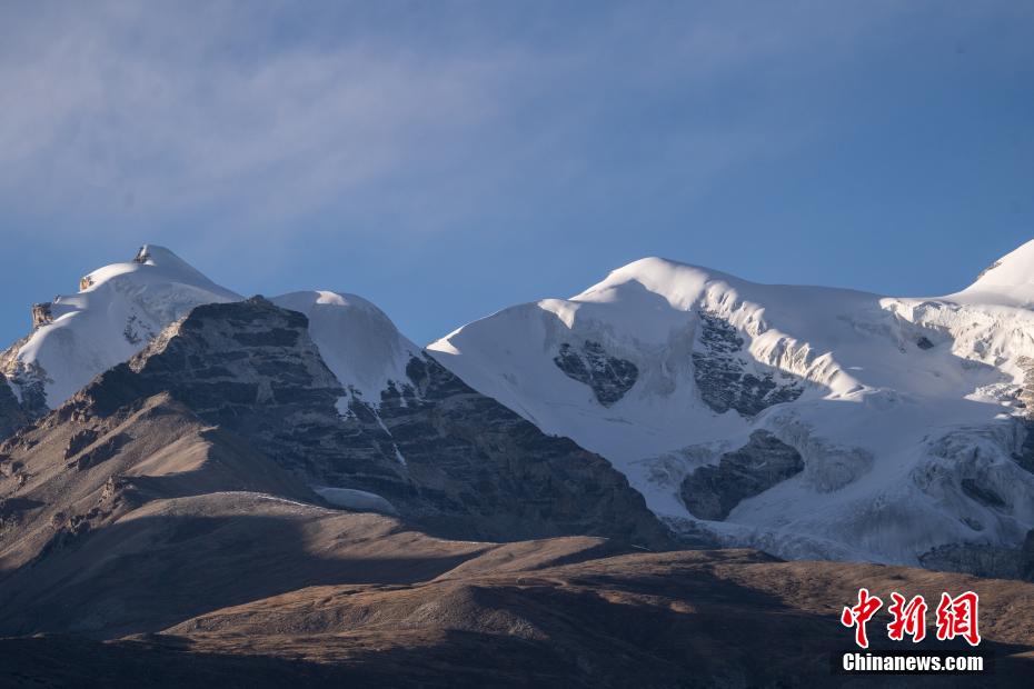 10月26日,在西藏自治區(qū)拉薩市當(dāng)雄縣拍攝的念青唐古拉山脈的雪景。念青唐古拉山脈,是青藏高原的主要山脈之一。位于西藏自治區(qū)中東部,近東西走向,全長(zhǎng)1400千米,平均寬度80千米,平均海拔5000—6000米。念青唐古拉峰海拔7111米。圖為念青唐古拉峰的雪景。中新社記者 貢嘎來松 攝