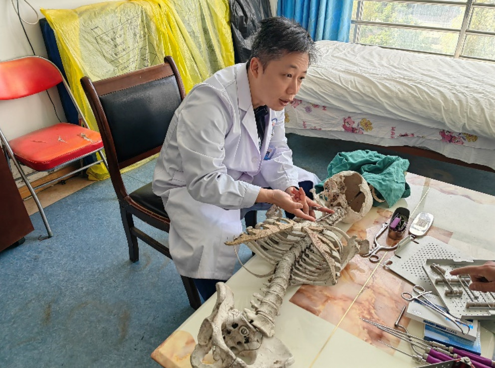 第十批醫(yī)療人才“組團(tuán)式”援藏專家北京協(xié)和醫(yī)院蔡思逸主任、西藏自治區(qū)人民醫(yī)院骨科脊柱組彭超主任醫(yī)師及洛絨赤乃副主任醫(yī)師對這名患者高度重視,共同商討治療方案?;颊呤中g(shù)指征明確,手術(shù)方案的選擇卻讓各位專家陷入了討論。