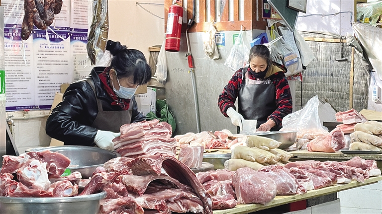 立冬過后,拉薩“菜籃子”“果盤子”產(chǎn)品購銷兩旺的同時(shí),肉類產(chǎn)品作為市民餐桌上的硬菜,也備受市民歡迎。在拉薩市城關(guān)區(qū)明生菜市的肉類售賣區(qū),記者看到每個(gè)肉攤上擺放著不同的肉品,攤主們忙著割肉稱重,不少市民正在仔細(xì)選購?!白罱鞖饫淞?,吃肉可以增加熱量,多買點(diǎn)回去凍起來慢慢吃?!闭谔暨x牛肉的拉薩市民張女士笑著說,“這里的肉品新鮮,價(jià)格也合理,我經(jīng)常來這里買肉?!?/p>