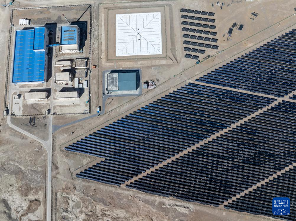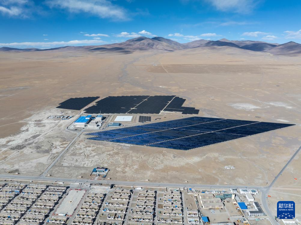 鳥瞰措勤縣城區(qū)清潔能源集中供暖特許經(jīng)營項目的光伏陣列(無人機照片,11月20日攝)。新華社記者 姜帆 攝