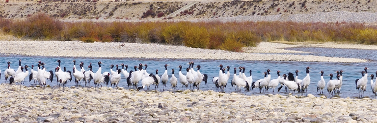 記者了解到,近年來隨著西藏高度重視黑頸鶴等野生動(dòng)物的保護(hù)工作,通過建立黑頸鶴國家級(jí)自然保護(hù)區(qū)、實(shí)施生態(tài)修復(fù)工程,有效改善了黑頸鶴的生存環(huán)境。據(jù)統(tǒng)計(jì),西藏境內(nèi)的黑頸鶴數(shù)量由不到3000只增加到1萬多只,種群數(shù)量也在持續(xù)增長。(圖由洛克 益西曲珍提供)