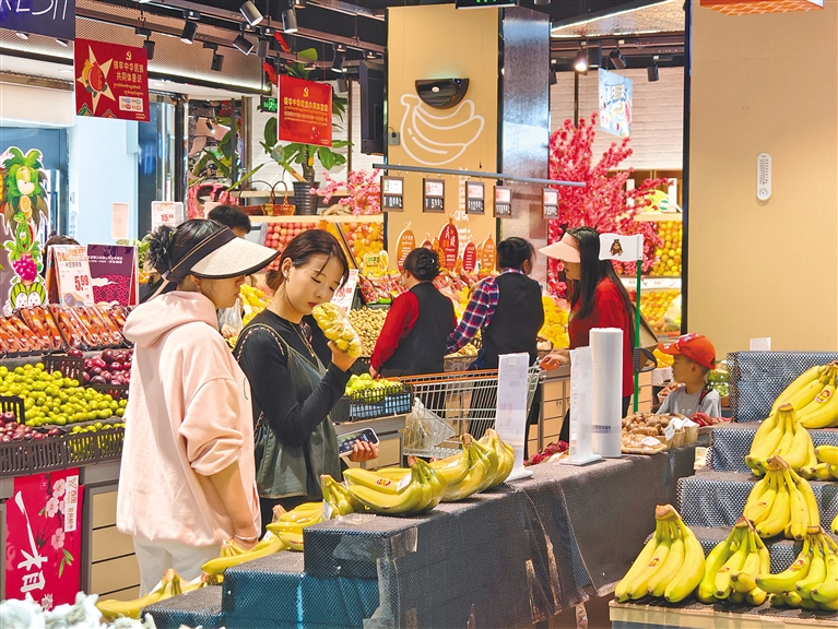 市民在巴宜區(qū)西屯超市選購(gòu)新鮮蔬果。