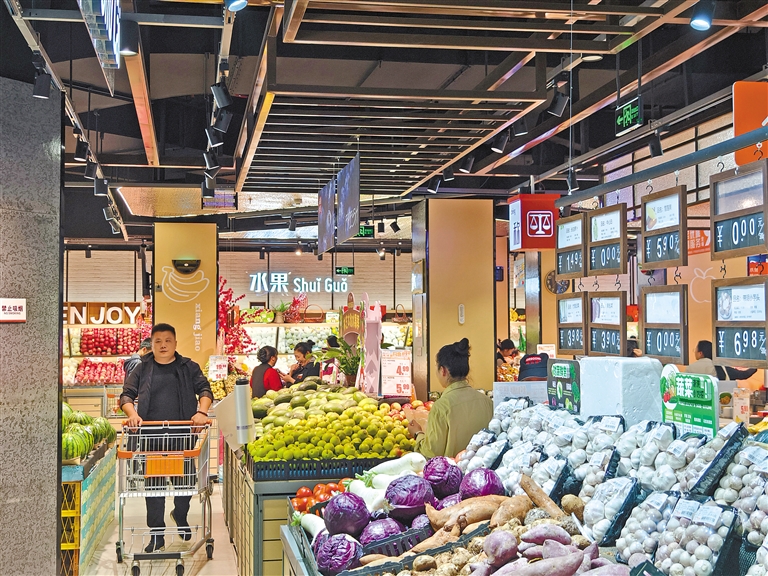 巴宜區(qū)西屯超市蔬果區(qū)。記者 謝筱純 王珊 攝
