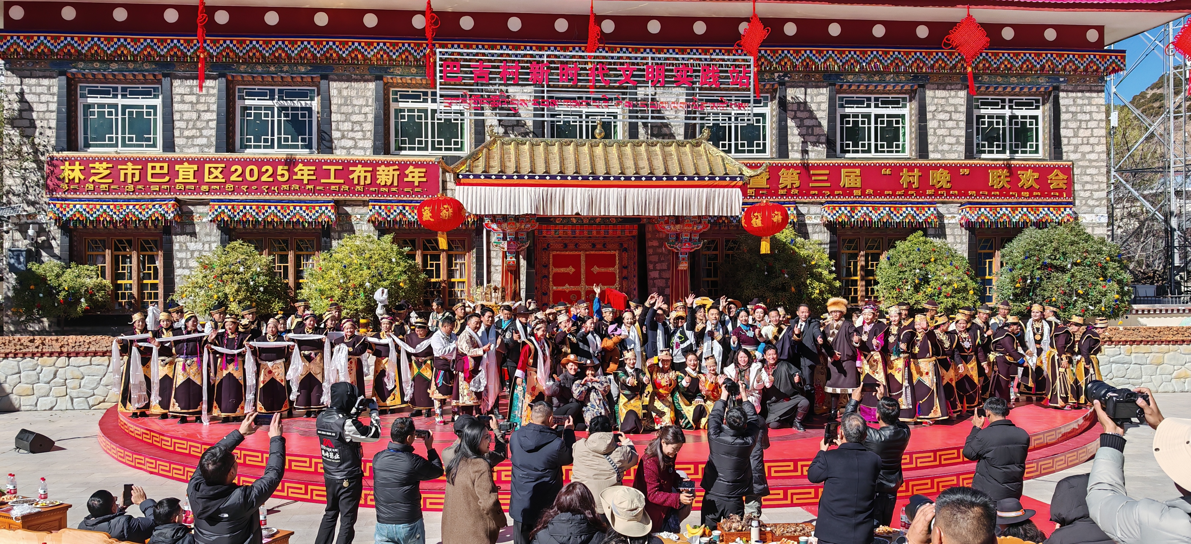初冬時節(jié),西藏林芝市巴宜區(qū)巴吉村村道兩旁的樹枝上掛滿紅彤彤的燈籠,處處喜氣洋洋,工布新年年味濃郁,文化活動廣場上更是熱鬧非凡。11月30日,巴宜區(qū)迎來了一年一度的文化盛事,2025年工布新年暨第三屆“村晚”聯(lián)歡會在巴吉村隆重舉行。