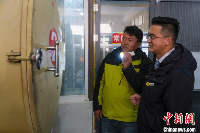 圖為12月12日,中國農(nóng)業(yè)銀行工布江達縣支行綜合部經(jīng)理王南(右)在合作社了解生產(chǎn)經(jīng)營情況。記者 江飛波 攝