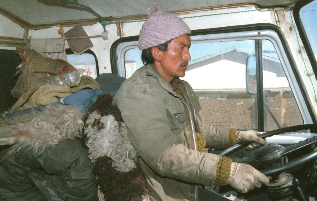1989年拍攝的長(zhǎng)年駕車奔馳在青藏公路上的藏族司機(jī)。