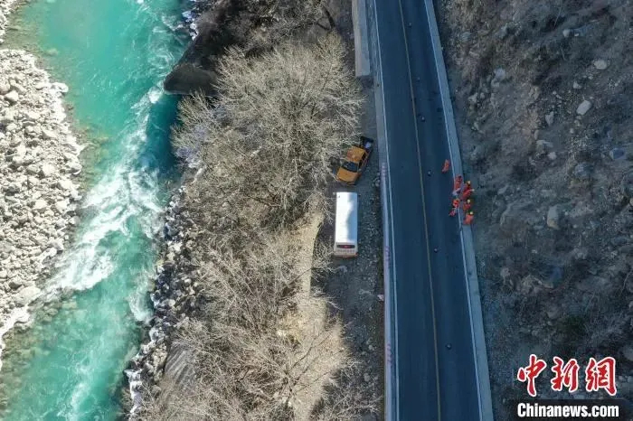 圖為部分養(yǎng)護路段(右)。(無人機照片)中新社記者 貢嘎來松 攝